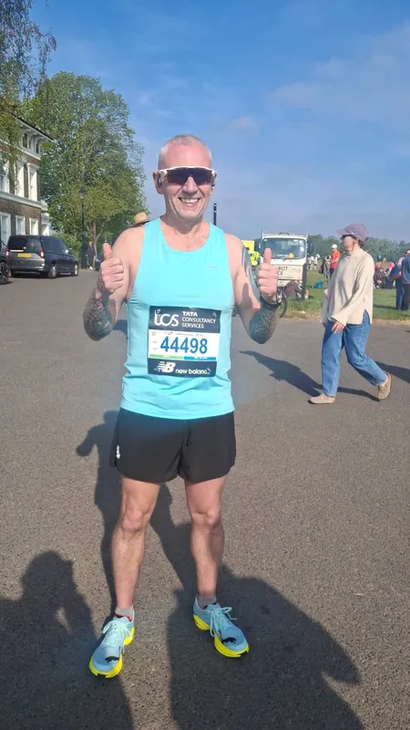 Paul Stevens also completed the unofficial reverse London Marathon at midnight, which he completed in 5:11:51 before supporting teammates on the official course in the morning.