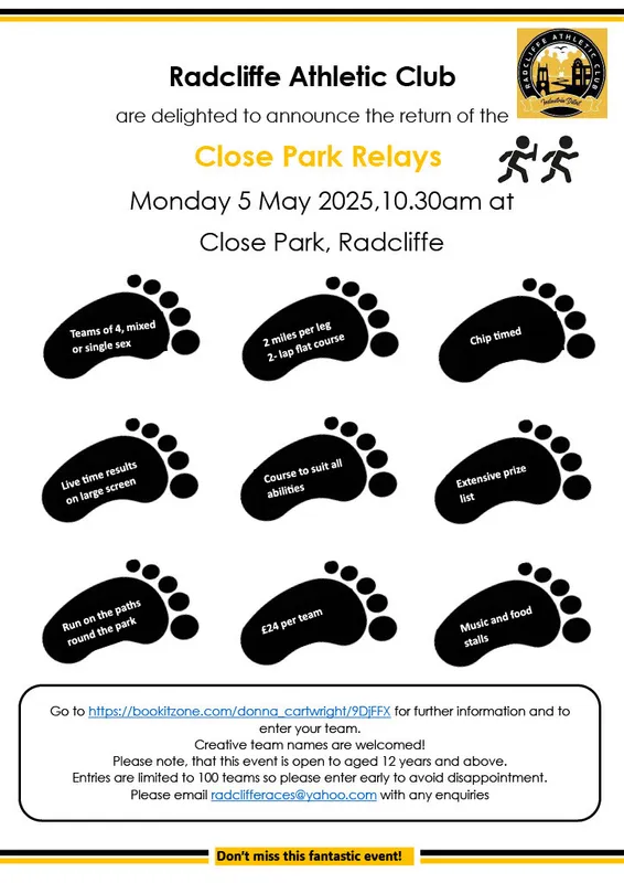 Radcliffe AC is delighted to be staging three races in 2025.